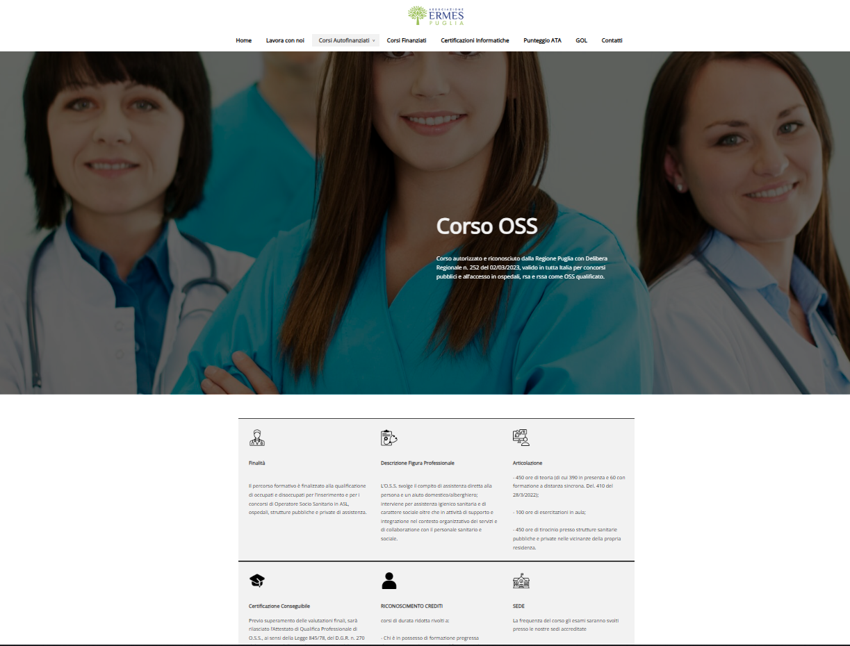 Sito vetrina con piattaforma E-learing integrata. progettazione, realizzazione design e funzionalità. Il sito contiene una sezione di "AREA RISERVATA" dove inserendo le credenziali è possibile accedere alla propria area di E-Learing con videolezioni caricate